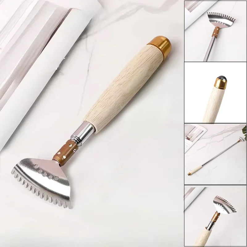This telescopic metal back scratcher features a wide claw design and a steel roller ball for comprehensive massage and itch relief. Its extendable wooden handle allows you to reach the back, shoulders, scalp, and other hard-to-access areas with ease. The roller ball adds gentle stimulation for improved blood circulation while relieving tension. The durable metal claw provides effective scratching without damaging the skin. This versatile tool can be used on the face, head, scalp, or buttocks for full-body relaxation. At Strong Lean Fit, we prioritize practical wellness tools that enhance comfort and self-care. The ergonomic wooden handle ensures a firm grip and comfortable use. Its telescopic design makes it convenient for storage and portability. Regular use can help reduce stress, soothe itchy spots, and stimulate muscle relaxation. Whether for personal care or as a thoughtful gift, this back scratcher combines durability, functionality, and comfort for everyday wellness.